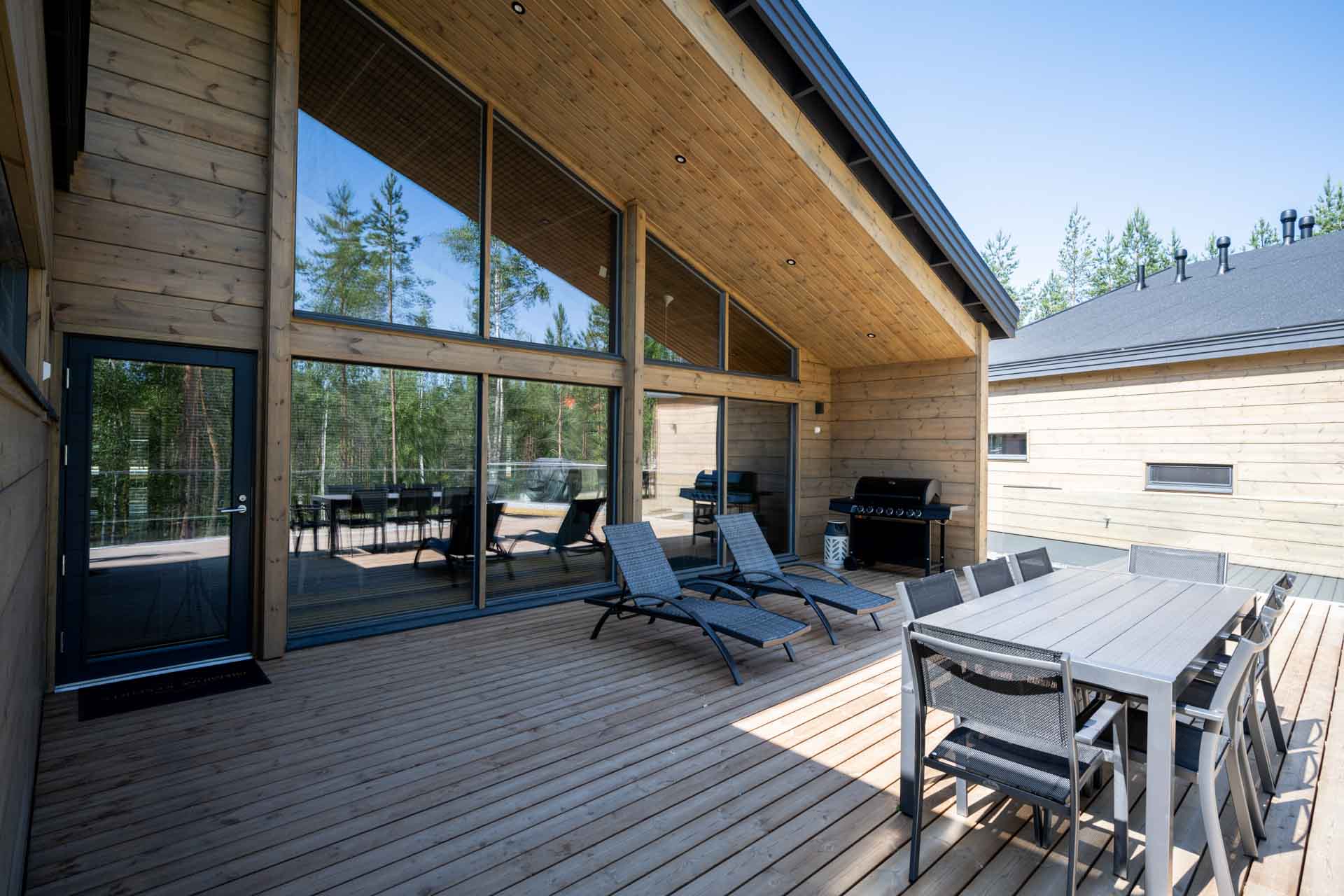 Huoneistossa on tilava sauna, iso terassi ja erillisellä varauksella myös käytettävissä poreamme.