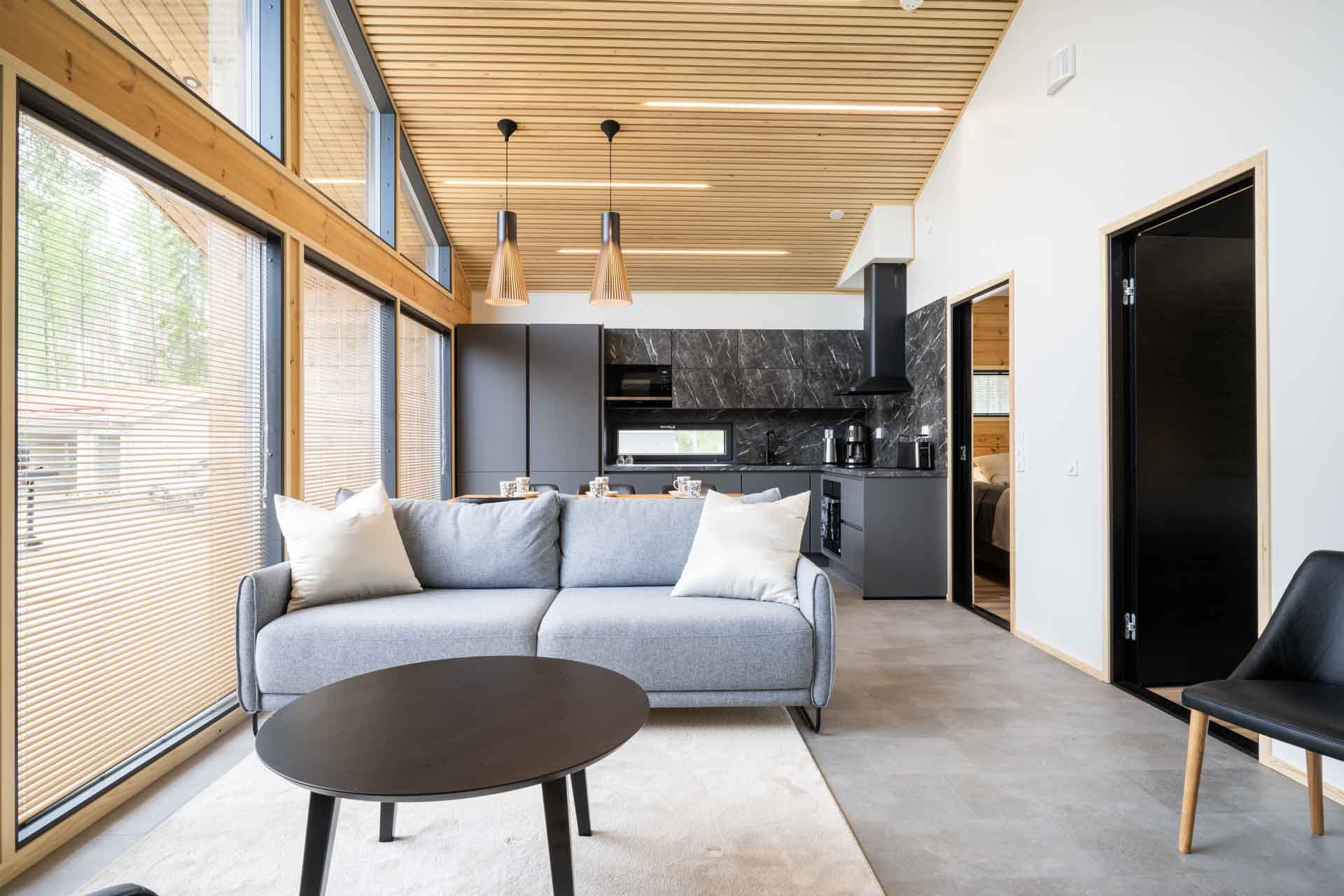 Huoneistoissa voit nauttia luonnonläheisyydestä kaikkine mukavuuksineen. Huoneistoissa on 3 makuuhuonetta ja avarassa olohuoneessa vuodesohva, jolloin 8 henkilöä majoittuu mukavasti. Huvilat toimivat erinomaisesti myös kokouksiin. Huoneistot on varusteltu laadukkailla Grundig kodinkoneilla ja astiastot ovat 8 henkilölle.